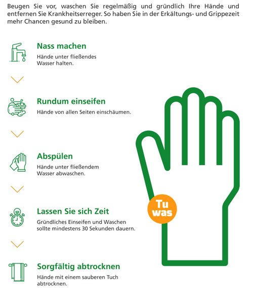 beugen Sie vor und waschen Sie regelmäßig und gründlich Ihre Hände. Achten Sie bitte auch auf eine Niesettikette. Zeigen Sie das richtige Verhalten beim Niesen und Händewaschen auch Ihren Kindern. Selbstverständlich wird auch in den KiTas hierauf genau geachtet. Damit können wir viel für die Gesundheit aller tun.