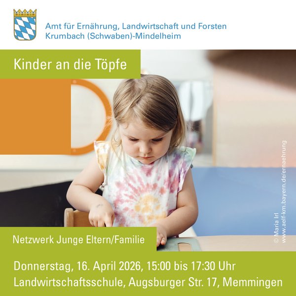 Können denn Kleinkinder im Alter ab ca. 2 Jahren in der Küche schon mithelfen? Viele scheuen sich davor, Kinder in die Küche zu lassen. Doch durch das Mithelfen können Kleinkinder viel lernen und bekommen einen näheren Bezug zu Lebensmitteln. In dieser Veranstaltung des Amtes für Ernährung lernen Sie die Grundlagen der Kinderernährung kennen. Gemeinsam mit Ihrem Kind bereiten Sie einfache, kleine Gerichte zu, die das Geschmacksspektrum erweitern.