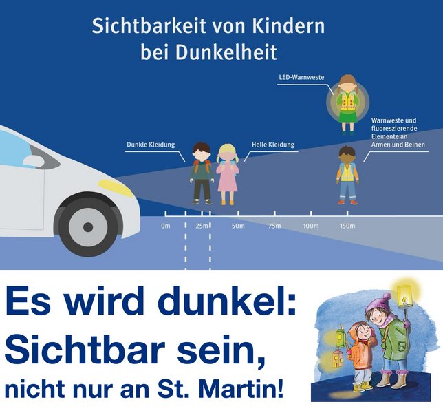 Diese Woche sind wieder viele Kinder mit ihren Laternen in unserer Stadt unterwegs, um Sankt Martin zu feiern. Da freuen wir uns alle drauf! Bitte passt aber alle gut aufeinander auf im Straßenverkehr - gerade dann, wenn es nun jeden Tag immer dunkler wird.